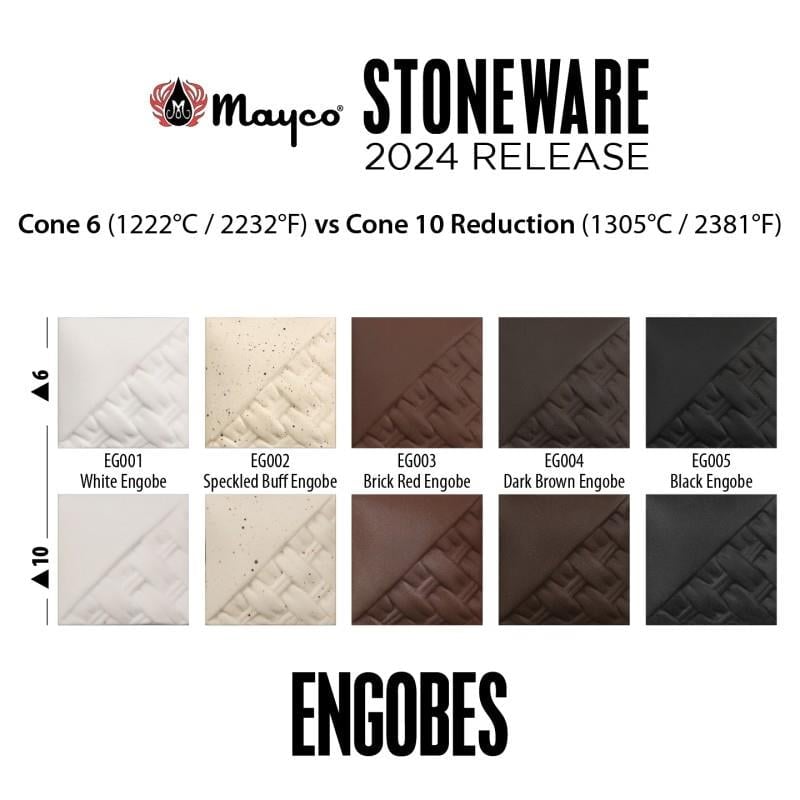 Parıltıyı artırmak ve dokuyu iyileştirmek için, son kat kurumadan önce parmaklarınızla ürünün yüzeyini parlatın/cilalayın. Deri sertliğindeki çamura, cone 04(1000-1040)'te pişirilmiş bisküviye uygulanabilir. Engoblar genellikle sgraffito ve majolika gibi çeşitli dekoratif teknikler için kullanılır. Mat pişirimlidir. Rengi yoğunlaştırmak veya yemek takımlarında kullanmak için şeffaf sır (SW004) Çinkosuz Şeffaf uygulayın. Siyah bir yüzey için SW004 Çinkosuz Şeffaf önerilir. SW001 Seramik Şeffaf, rengi koyu kahverengiye çevirecek ve ışıltıyı etkileyecektir. Engoblar, baz olarak kullanıldığında sır sonuçlarını etkileyecektir. Oksidasyon veya redüksiyon pişirimlerinde kullanılabilir. Sonuçlar değişiklik gösterebilir. Kil gövdesi seçimi, uygulama kalınlığı, pişirme işlemi ve sıcaklık, pişirme sonuçlarını büyük ölçüde etkileyecektir. Uygulamanızı daima fırın ortamınızda kil gövdesi üzerinde test edin.